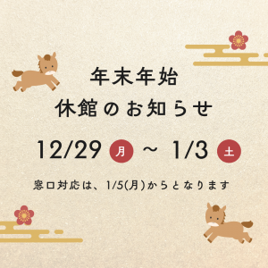 はいたい!今年も様々な公民館活動にご参加いただきありがとうございます。年末年始は下記の期間は休館となります。年末年始休館12月29日(月)~1月3日(土)※1月4日(日)から開館いたしますが、お問合せなどの対応は...